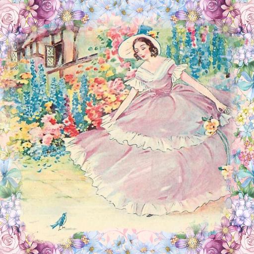 Keywords: vintage collage drawing lady dress flowers pink digital girl sweet romantic decorative decoupage old antique photography lace light green blue young woman female outdoors adult portrait beauty hair beautiful eyes love floral summer