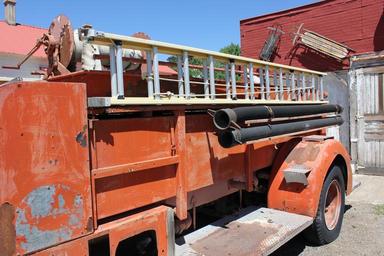 Keywords: vintage fire truck retro emergency metal rescue hose ladder red