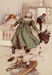 Keywords: vintage retro enchanted charming fairy tale enchanting book illustration warwick goble art illustrator fairytale old antique people children childhood boy girl bed woman servant escape