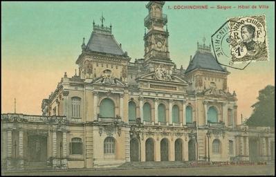 Keywords: vintage saigon postcard post card drawing asia city travel architecture scene landmark building exterior capital business prosperity sunshine exotic tourist