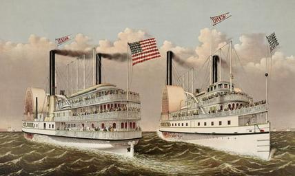 Keywords: vintage steam ship american flag ships transport sea nautical sailing ocean navigation trip transportation painting old history antique