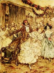 Keywords: vintage victorian antique old arthur rackham charles dickens christmas carol literature people celebrate celebration party dancing couples