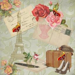 Keywords: vintage victorian paper scrapbooking shoes suitcase eiffel tower tower roses butterfly postcard corset