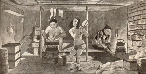 | Keywords: Vinterhus.jpg Da Vinterhus i Grønland omkring 1830 opført af sten og tækket med græstørv Før og Nu Historisk topografisk tidsskrift og illustrationsværk 1919 redigeret af F Zachariae 1919 Stik af H G F Holm og J Holm hans far efter tegning af W A Graah på hans Undersøgelsesrejse til Grønland i Aarene 1828 - 31 PD-old H G F Holm History of Greenland Inuit clothing Fur clothing of Inuit people Fur fashion in 1830 | ||||