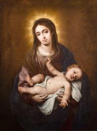 | Keywords: Virgen con Niño, atribuida al taller de Murillo (Museo de Bellas Artes de Sevilla).jpg La obra representa a la Virgen María junto a su hijo el Niño Jesús circa 1668 1669 oil on canvas Size cm 105 125 Institution Museo de Bellas Artes Seville http //www juntadeandalucia es/cultura/WEBDomus/fichaCompleta do ninv CE0127P volver busquedaAvanzada k Murillo lng es accession number CE0127P http //www juntadeandalucia es/cultura/WEBDomus/fichaCompleta do ninv CE0127P volver busquedaAvanzada k Murillo lng es PD-old-100 Paintings of Madonna and Child in Spain 17th-century paintings of Madonna and Child Paintings by Bartolomé Esteban Murillo's atelier 17th-century paintings in the Fine Arts Museum of Seville 1660s paintings in Spain |