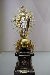 | Keywords: Virgin in Glory, South German, c. 1600, silver, parcel-gilt, wood - Busch-Reisinger Museum, Harvard University - DSC01376.jpg en Exhibit in the Busch-Reisinger Museum Harvard University Cambridge Massachusetts USA This artwork is in the public domain because the artist died more than 70 years ago 2015-04-11 12 21 22 own Daderot other versions PD-old-70 cc-zero Metalwork in the Busch-Reisinger Museum Statues of Madonna on the crescent | ||||