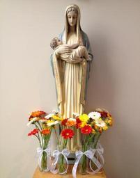 Keywords: virgin madonna st mary mother statue catholic church flowers