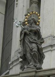 Keywords: Virgin Mary (Lesser Town).JPG Virgin Mary statue on the roof of St Nicholas Church Lesser Town Prague Own date Joker Island Church of Saint Nicholas in Malá Strana Statues of Virgin Mary in Prague Statues in Malá Strana Prague
