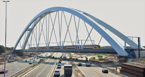 | Keywords: outdoor zandhazenbrug brug bridge railroad bridge railroadbridge spoorbrug treinbrug train bridge trainbridge indfrastructure infrastructuur snelweg a1 snelwega1 muiderberg virm verlengt interregio materieel verlengtinterregiomaterieel ns nederlndse spoorwegen nederlndsespoorwegen trein train netherlands snelweg highway freeway autosnelweg veel verkeer veelverkeer heavy traffic heavytraffic auto's autos veel auto's veelautos many cars manycars cars bovenleiding bovenleidingsmasten bovenleidingportalen overhead wires overheadwires overhead lines overheadlines bovenleidingmasten architecture steel arch bridge building structure infrastructure building De nieuwe spoorbrug over de A1 t.h.v. Muiderberg. De nieuwe spoorbrug over de A1 t.h.v. Muiderberg. |