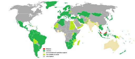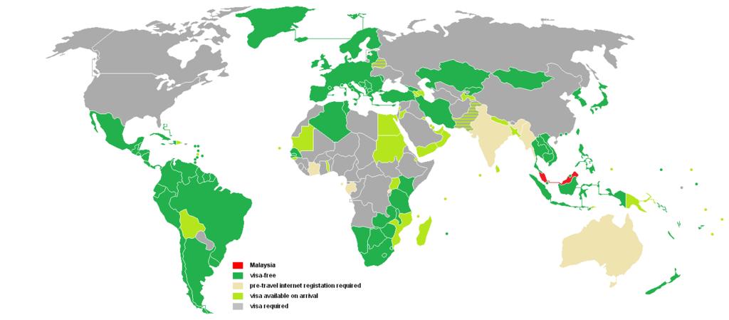 | Keywords: Visa requirements for Malaysian citizens.PNG en Visa requirements for Malaysian citizens 2007-09-14 own User Noblesham Noblesham en Original upload log en wikipedia FtCG page en wikipedia MalaysiaVisaFree PNG wikitable - 18 42 4 March 2013 1 425 × 625 57 340 bytes bevis huang w en Not required Mexico Iraq - 18 42 11 January 2012 1 425 × 625 57 340 bytes Anggerik w en Visa required Ghana Gambia Not required Zambia On arrival Yemen North Korea - 12 25 27 March 2011 1 425 × 625 33 046 bytes Anggerik w en Visa required Senegal Zambia Not required Gambia Ghana On arrival Rwanda Bolivia - 07 46 21 February 2011 1 425 × 625 33 073 bytes Travelbird w en updates differentiate between visa-free visa-on-arrival - 14 06 25 February 2010 1 425 × 625 19 659 bytes Ozguroot w en +Sudan; VOA - 21 40 28 January 2010 1 425 × 625 19 633 bytes Ozguroot w en -Yemen - 01 04 24 January 2010 1 425 × 625 19 636 bytes Ozguroot w en - 23 49 23 January 2010 1 425 × 625 19 636 bytes Ozguroot w en Malaysia better color difference - 18 39 16 September 2009 1 425 × 625 32 953 bytes Anggerik w en Mexico - 08 58 24 June 2009 1 425 × 625 32 882 bytes Passportguy w en - 14 08 15 May 2009 1 425 × 625 33 036 bytes Passportguy w en update serval countries - 09 36 19 April 2009 1 425 × 625 33 005 bytes Passportguy w en add Montenegro visa free - 02 04 31 December 2008 1 425 × 625 33 022 bytes Rammsf w en Japan - visa required - 07 10 25 April 2008 1 425 × 625 32 979 bytes Noblesham w en Macedonia - visa free - 06 44 25 April 2008 1 425 × 625 33 003 bytes Noblesham w en Ethiopia - visa issued on arrival - 06 33 25 April 2008 1 425 × 625 32 976 bytes Noblesham w en Bangladesh - visa prior to arrival - 06 29 25 April 2008 1 425 × 625 33 048 bytes Noblesham w en Ecuador - visa free Dominican Republic - visa free Belarus - visa prior to arrival - 15 35 17 November 2007 1 425 × 625 32 992 bytes Noblesham w en - 15 32 17 November 2007 1 425 × 625 32 964 bytes Noblesham w en - 12 56 14 September 2007 1 425 × 625 32 958 bytes Noblesham w en - 12 51 14 September 2007 1 425 × 625 32 969 bytes Noblesham w en Maps showing visa requirements Malaysia |