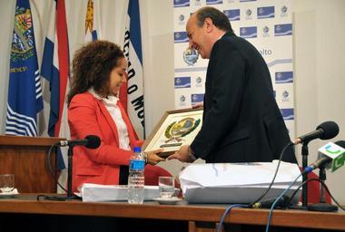 | Keywords: indoor La embajadora Reynoso recibe un obsequio por parte del Intendente Departamental de Salto, Germán Coutinho [U.S. Embassy photo by Vince Alongi / Copyright info] La embajadora Reynoso recibe un obsequio por parte del Intendente Departamental de Salto, Germán Coutinho [U.S. Embassy photo by Vince Alongi / Copyright info] |