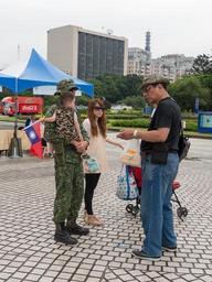 | Keywords: Visitor Talking with Soldier Holded Boy 20140607.jpg zh-tw 中正 念堂廣場上,遊客與負責解說的陸軍士兵交談,穿迷彩 的孩子抱 士兵手上 2014-06-07 13 03 20 Own 玄史生 Republic of China Army Forces 90th Anniversary Military people and civilians Military people with children 玄史生写 文庫 Taken with Leica V-Lux 4 Uploaded with UploadWizard cc-zero |