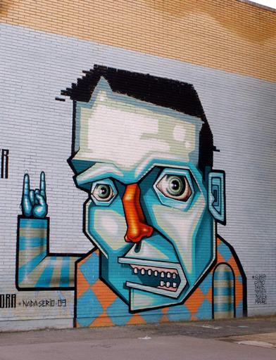 | Keywords: Vitoria - Graffiti & Murals 0157.JPG en Graffiti-mural en el Colegio Público Ángel Ganivet-Izarra-Santa Lucía en el barrio de Santa Lucía de Vitoria Gasteiz Imagen tomada el 27/12/2010 own Zarateman 2010-12-27 Cc-zero Murals in Vitoria-Gasteiz Graffiti in Vitoria-Gasteiz Graffiti of faces Nada Serio Blue people in art Blue and orange Horn gestures |