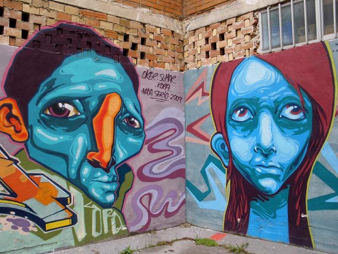 Keywords: Vitoria - Graffiti & Murals 0718.JPG en Graffiti de Nada Serio en el barrio de Adurza de Vitoria-Gasteiz own Zarateman 2011-05-05 Cc-zero Nada Serio Graffiti in Vitoria-Gasteiz Graffiti of faces Blue people in art Red hair in art