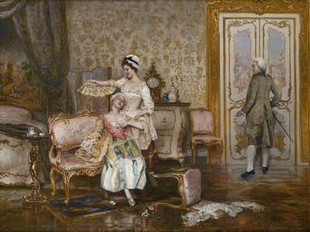 | Keywords: Vittorio Reggianini - A Shocking Announcement.jpg Artwork Creator Vittorio Reggianini oil on canvas cm 54 5 70 object history exhibition history credit line signed bottom left VReggianini accession number http //www bonhams com/auctions/14972/lot/139/ Bonhams Vittorio Reggianini Rococo revival paintings Reggianini Fainting in art Fans in art PD-old-auto-1923 1938 | ||||