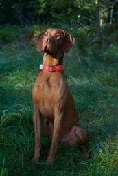 Keywords: vizsla proud dog forest animals spring nature morning necklace hunting greenery wheaton terrier
