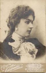 | Keywords: Vjaltseva Anastasya Dmitrievna the Seagull of Russian platform.jpg en Vjaltseva Anastasya Dmitrievna 1871 - 1913г г the Famous Russian variety singer mezzo soprano the performer of gipsy romances the actress of an operetta Popularity Вяльцевой in the beginning of XX century was huge it named the Seagull of Russian platform and the Russian Cinderella turned of the simple parlourmaid in one of the richest and known women of Russia Concerts of the incomparable performer of romances always caused a tremendous success and a plate with its records left in huge circulations The Photographer's studio H Rentz and F Schrader St -Petersburg Morskaya str 27 ru Вяльцева Анастасия Дмит иевна 1871 - 1913г г Знаменитая усская эст адная певица меццо-соп ано исполнительница цыганских омансов а тистка опе етты Популя ность Вяльцевой в начале XX века была ог омна её называли Чайкой усской эст ады и усской Золушкой п ев атившейся из п остой го ничной в одну из самых богатых и известных женщин России Конце ты нес авненной исполнительницы омансов всегда вызывали шумный успех а г аммофонные пластинки с её записями выходили ог омными ти ажами Похо онена в Александ о- евской Лав е г Санкт-Пете бу г Фотоателье H Rentz F Schrader г Санкт-Пете бу г ул о ская 27 de Vjaltseva Anastasya Dmitrievna 1871 - 1913г г Die berühmte russische Bühnensängerin der Mezzosopran die Darstellerin цыганских der Romanzen die Schauspielerin der Operette Die Popularität Вяльцевой am Anfang XX Jahrhundertes war riesig sie nannten ' die Möwe der russischen Bühne ' und ' vom russischen Aschenputtel ' umgewandelt aus dem einfachen Zimmermädchen in eine der am meisten reichen und bekannten Frauen Russlands Die Konzerte der 'nicht verglichenen' Darstellerin der Romanzen riefen den Bombenerfolg immer herbei und г аммофонные der Platte mit ihren Aufzeichnungen kamen in den riesigen Auflagen heraus Ist im Aleksandro-newalorbeer begraben Sankt Petersburg das Fotoatelier ' H Rentz und F Schrader ' Sankt Petersburg http //fotoshrader ru/wp-content/gallery/izvestnye-lyudi-rossii/d-vyalceva jpg Ф ид их Людвиг Ге манович Ш аде 1903 PD-old Anastasia Vyaltseva Photostudio of A Renz F Schrader People of Russia in 1903 |