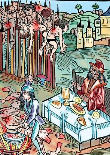 Keywords: Vlad Tepes and his forest.jpg Vlad Drăculea of Wallachia contemporary pamphlet from Strasbourg Hupfuff 1500 GW12530 ; scanned by Bridgeman Art 1500 author PD-old-100 Vlad III the Impaler in engravings Impalement Massacres in Romania Massacres in art |
