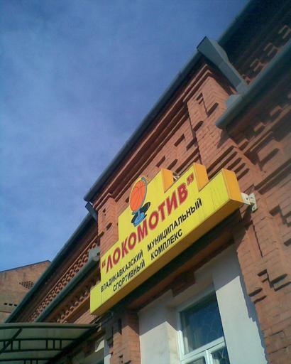 Keywords: Vladikavkaz-Lokomotiv.jpg en Sport club Locomotiv in Vladikavkaz Russia ru Вывеска на здании спо тивного клуба «Локомотив» во Владикавказе у вагоно емонтного завода Own Viatcheslav Ivanov user Amikeco 2008-12 Vladikavkaz