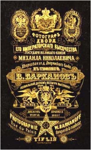 | Keywords: Vladimir Barkanov's photographic stamp. Tiflis. 1880.jpg en Vladimir Barkanov's photographic stamp Tiflis 1880 ka ვლადიმერ ბარკა ვის ფ ტ სტუდიის შტამპი ტფილისი 1880 წ http //www photomuseum org ge/photographers/barkanov/01 jpg photomuseum org ge Creator Vladimir Barkanov 1880 Source http //www photomuseum org ge/photographers/barkanov/barkanov_en htm www photomuseum org ge en <br> http //www photomuseum org ge/photographers/barkanov/barkanov_ge htm www photomuseum org ge ge PD-old-100 Photographic stamps in Georgia 1880 in Tbilisi Photos by Vladimir Barkanov |