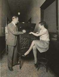 | Keywords: smithsonian institution smithsonianinstitution man woman 1934 westinghouse television cathode thirties 1930s smithsonian institution archives smithsonianinstitutionarchives monochrome indoor Subject: Zworykin, V. K (Vladimir Kosma) 1889-1982        Birt, Mildred        Westinghouse Electric & Manufacturing Company Type: Black-and-white photographs Date: 1929 Topic: Television Local number: SIA Acc. 90-105 [SIA2010-1667] Summary: Vladimir Kosma Zworykin (1889-1982), a Westinghouse Electric and Manufacturing Company research engineer, is shown demonstrating his new cathode ray television set which can entertain large groups instead of one or two spectators. Miss Mildred Birt is the interested watcher. The broadcast images are projected on a mirror on the top of the cabinet making it possible for many to watch Cite as: Acc. 90-105 - Science Service, Records, 1920s-1970s, Smithsonian Institution Archives Persistent URL:http://siris-archives.si.edu/ipac20/ipac.jsp?&profile=all&source=~!siarchives&uri=full=3100001~!289412~!0#focus Repository:Smithsonian Institution Archives View more collections from the Smithsonian Institution. Subject: Zworykin, V. K (Vladimir Kosma) 1889-1982 Birt, Mildred Westinghouse Electric & Manufacturing Company Type: Black-and-white photographs Date: 1929 Topic: Television Local number: SIA Acc. 90-105 [SIA2010-1667] Summary: Vladimir Kosma Zworykin (1889-1982), a Westinghouse Electric and Manufacturing Company research engineer, is shown demonstrating his new cathode ray television set which can entertain large groups instead of one or two spectators. Miss Mildred Birt is the interested watcher. The broadcast images are projected on a mirror on the top of the cabinet making it possible for many to watch Cite as: Acc. 90-105 - Science Service, Records, 1920s-1970s, Smithsonian Institution Archives Persistent URL:http://siris-archives.si.edu/ipac20/ipac.jsp?&profile=all&source=~!siarchives&uri=full=3100001~!289412~!0#focus Repository:Smithsonian Institution Archives View more collections from the Smithsonian Institution. |