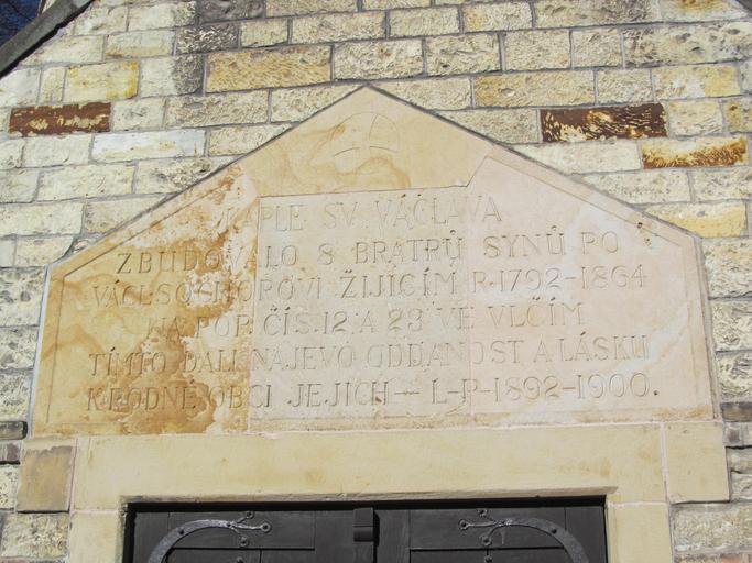 Keywords: Vlčí kaple5.JPG en Inscription at the frontage of Chapel in Vlčí cs Nápis nad průčelím kaple ve Vlčí own Gortyna 03 02 2015 50 3329356 13 8530569 Foto českých obcí Chapel of Saint Wenceslaus in Vlčí