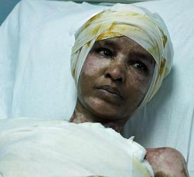 | Keywords: Voa arrott libya ethiopia shwygar+ mullah ethiopia 480 01Sep11.JPG en Shweyga Mullah is hospitalized in Tripoli with burns covering her head and torso Mullah says Gadhafi's daughter-in-law Aline Skaf tied her up and poured boiling water on her head Mullah was a caretaker for the family's children VOA http //www voanews com/english/news/middle-east/human-rights/Aid-Sought-for-Alleged-Gadhafi-Torture-Victim--129138853 html Photo VOA - E Arrott 2011-09-02 PD-USGov-VOA Libyan civil war | ||||