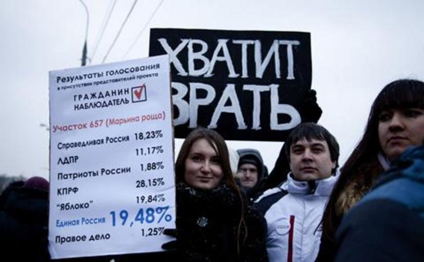 Keywords: VOA Yuli Weeks Russia Protests Moscow Sign 12 20 2011 480.jpg en Protesters gathered in central Moscow Saturday to express their discontent with recent parliamentary elections which observers say were tainted by ballot-stuffing and fraud on behalf of Mr President Vladimir Putin ™s party United Russia http //www voanews com/english/news/europe/Russians-Protest-Alleged-Voter-Fraud-135369778 html Photo VOA - Yuli Weeks 2011-12-10 PD-USGov-VOA Demonstration during the 2011-2012 Russian protests in Moscow 10 December 2011 |