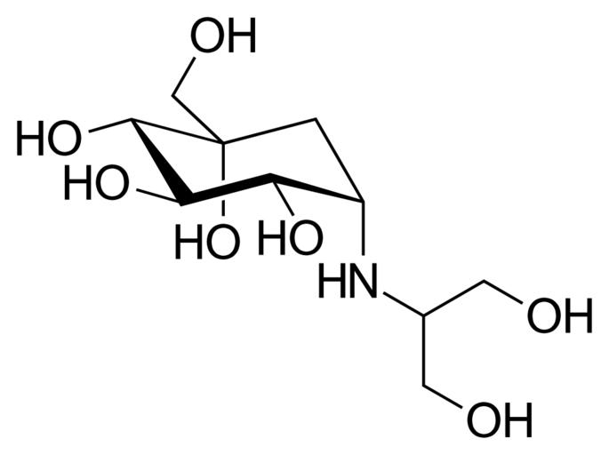 Keywords: Voglibose structure.svg voglibose trade names Basen Glustat codenamed AO 128 AO-128 ” an alpha-glucosidase inhibitor used in the management of diabetes mellitus own Yikrazuul 2010-09-12 thumb left valid svg Voglibose