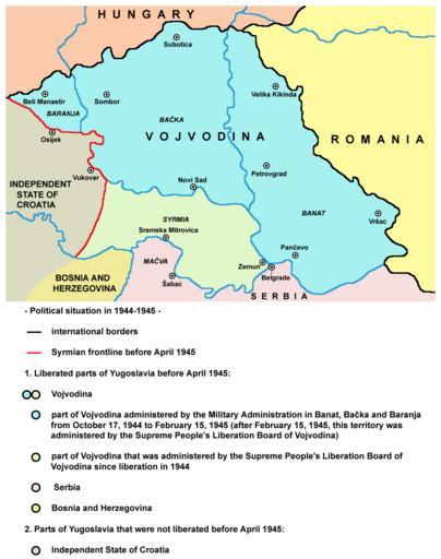 Keywords: Vojvodina 1944 1945 01.png English Vojvodina from October 1944 to April 1945 - territory of Military Administration in Banat Bačka and Baranja and Syrmian frontline Serbian Војводина од октоб а 1944 до ап ила 1945 године - под учје Војне уп аве у Банату Бачкој и Ба ањи и линија С емског ф онта 2009-06-29 own assumed PANONIAN self made map by user PANONIAN References Nikola Gaćeša - Dušan Živković - Ljubica Radović Istorija za III razred gimnazije prirodno-matematičkog smera i IV razred gimnazije opšteg i društveno-jezičkog smera Beograd 1997 Jelena Popov Vojvodina i Srbija Veternik 2001 Dimitrije Boarov Politička istorija Vojvodine Novi Sad 2001 Dragomir Jankov Vojvodina - propadanje jednog regiona Novi Sad 2004 Istorijski atlas Geokarta Beograd 1999 Školski istorijski atlas Zavod za izdavanje udžbenika SR Srbije Beograd 1970 Povijesni atlas Učila - Zagreb Zagreb 1971 Povijesni atlas za osnovnu školu Kartografija - Tlos - Zagreb Zagreb 1975 Denis Šehić - Demir Šehić Istorijski atlas sveta Beograd 2007 Istorijski atlas Intersistem kartografija Beograd 2010 SAP Vojvodina Military Administration in Banat Bačka and Baranja Syrmian Front Maps of the history of Vojvodina Maps of the history of Syrmia Maps of the history of Bačka Maps of the history of Banat Maps of the history of Baranja Maps of Yugoslavia during World War II Maps of Serbia during World War II Maps of the Independent State of Croatia |