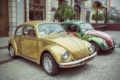 Keywords: volkswagen beetle volkswagen bag german car two-door retro economy car golden mosaic decor decoration design exterior vintage ornament iasi romania
