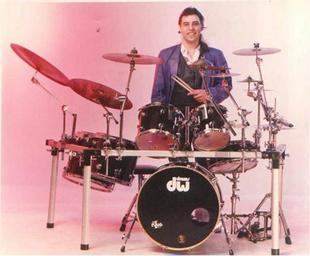 Keywords: VOLPINI.JPG es Foto prensa Daniel Volpini artista Pearl own Danielv 1992 la foto es usada en mi propio sitio Men with drum-kits Drummers Drum Workshop