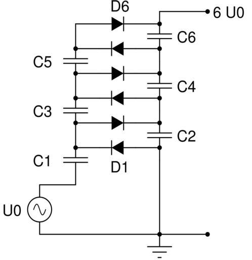 Keywords: Voltage multiplier villard.svg Násobič napětí Hochspannungskaskade dreifach Kaskade der Villardschaltung Spannung U0 wird versechstfacht Voltage multiplier own 2007-02 Steffen Müller Hochspannungskaskade PNG Electrical_power_conversion_diagrams |