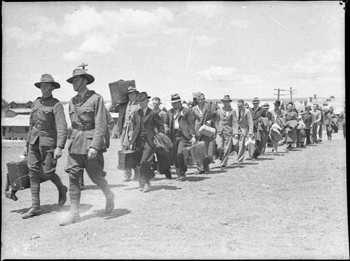 | Keywords: state library of new south wales statelibraryofnewsouthwales blackandwhite monochrome outdoor black and white Sydney Exposures book and exhibition caption: Volunteers for war, Ingleburn, November 1939 : The men of the Second AIF were accused of being 'economic conscripts' who had joined up for the sake of 5 shillings a day with food and quarters, rather than remain on the dole of 8 shillings and sixpence a week. Format: Photograph Find out more about this photograph: acms.sl.nsw.gov.au/item/itemDetailPaged.aspx?itemID=25326 Search for more great images in the State Library's collections: acms.sl.nsw.gov.au/search/SimpleSearch.aspx From the collection of the State Library of New South Wales: www.sl.nsw.gov.au Sydney Exposures book and exhibition caption: Volunteers for war, Ingleburn, November 1939 : The men of the Second AIF were accused of being 'economic conscripts' who had joined up for the sake of 5 shillings a day with food and quarters, rather than remain on the dole of 8 shillings and sixpence a week. Format: Photograph Find out more about this photograph: acms.sl.nsw.gov.au/item/itemDetailPaged.aspx?itemID=25326 Search for more great images in the State Library's collections: acms.sl.nsw.gov.au/search/SimpleSearch.aspx From the collection of the State Library of New South Wales: www.sl.nsw.gov.au |