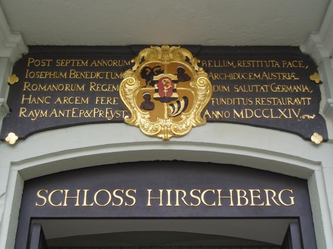 | Keywords: Von Strasoldo Wappen Schloss Hirschberg.jpg  Bauinschrift und Wappen des Eichstätter Fürstbischofs Raymund Anton von Strasoldo in Schloss Hirschberg 1764 self-photographed original text selbst fotografiert 1 2007-10 KBWEi wikipedia de KBWEi Original upload log de wikipedia Brackenheim CommonsHelper de wikipedia Von_Strasoldo_Wappen_Schloss_Hirschberg jpg 2007-11-07 13 59 KBWEi 2560×1920× 1155297 bytes <nowiki> Andere Versionen Anmerku</nowiki> ImageNote 1 883 346 771 752 2560 1920 2 thumb left ImageNoteEnd 1 Schloss Hirschberg Building inscriptions in Germany Raymund Anton von Strasoldo Coats of arms of bishops of the Roman Catholic Diocese of Eichstätt Derivatives of the Coat of arms of Eichstätt diocese Reliefs of coats of arms in Landkreis Eichstätt |