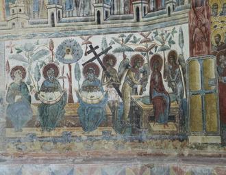 | Keywords: Voronet murals 2010 21.jpg Voroneţ Monastery Romania The church is one of the Painted churches of northern Moldavia listed in UNESCO's list of World Heritage sites own photo 14 d'Août 2010 Man vyi Own work all rights released Public domain Murals in Voroneț Murals and icons on the exterior of churches Frescos of the Last Judgment |