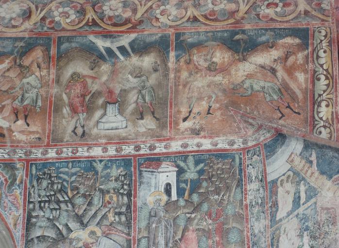 Keywords: Voronet murals 2010 42.jpg Voroneţ Monastery Romania The church is one of the Painted churches of northern Moldavia listed in UNESCO's list of World Heritage sites own photo 14 d'Août 2010 Man vyi Own work all rights released Public domain Murals in Voroneț Murals and icons on the exterior of churches Cain and Abel |