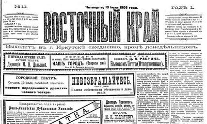| Keywords: Vosochniy kray.jpg ru Газета Восточный к ай Издавалась в И кутске И кутская го одская библиотека Редакция газеты Восточный к ай 1906-07-13 PD-old Newspapers of Russia 1906 13 July Media of Irkutsk History of Irkutsk Newspapers of Russia to be categorised by name |