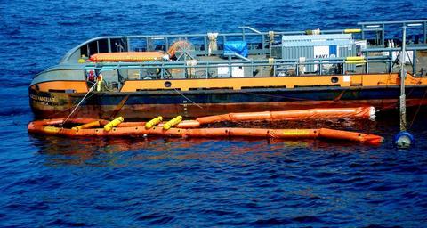 | Keywords: VOSS on Seacor Vanguard in Gulf of Mexico 2010-05-16 3.jpg en U S Navy Supervisor of Salvage and Diving personnel operate a Vessel of Opportunity Skimming System VOSS aboard the Naval Sea Systems command-contracted offshore supply vessel Seacor Vanguard to mitigate damage from the Deepwater Horizon oil spill Deepwater Horizon was an ultra-deepwater oil rig that sank April 22 causing a massive oil spill threatening the U S Gulf Coast http //www navy mil/view_image asp id 85623 2010-05-16 Alan Baribeau PD-USGov-Military-Navy Files by User BrokenSphere Deepwater Horizon oil spill response in the Gulf of Mexico Oil recovery vessels Oil containment booms Seacor Vanguard ship 1998 |