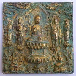 | Keywords: Votive plaque with Seated Buddha Shakyamuni, Attendant Bodhisattvas, and Monks, China, Sui dynasty, 581-618 AD, gilt bronze - Arthur M. Sackler Museum, Harvard University - DSC00865.jpg en Exhibit in the Arthur M Sackler Museum Harvard University Cambridge Massachusetts USA This artwork is in the public domain because the artist died more than 70 years ago 2015-04-11 11 00 13 own Daderot other versions PD-old-70 cc-zero Buddhist statuettes in the Arthur M Sackler Museum Chinese sculptures in the Arthur M Sackler Museum Metalwork of the Sui Dynasty |