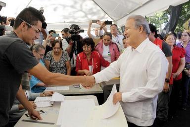 | Keywords: san salvador sansalvador people El Presidente de la República, Salvador Sánchez Cerén, votó esta mañana en la urna 23 del centro de votaciones ubicado en el contorno del Teatro Municipal de Cámara "Roque Dalton". Presidente Sánchez da la mano al miembro de la Junta receptora de votos luego de que le ha entregado las papeletas para votar. El Presidente de la República, Salvador Sánchez Cerén, votó esta mañana en la urna 23 del centro de votaciones ubicado en el contorno del Teatro Municipal de Cámara "Roque Dalton". Presidente Sánchez da la mano al miembro de la Junta receptora de votos luego de que le ha entregado las papeletas para votar. |