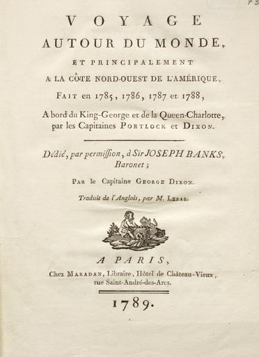 | Keywords: Voyage autour du monde - title page 01.jpg en French translation of A voyage round the world but more particularly to the north-west coast of America microform performed in 1785 1786 1787 and 1788 in the King George and Queen Charlotte Captains Portlock and Dixon ; dedicated by permission to Sir Joseph Banks Bart 1789 Cite book Maradan Dixon George Voyage autour du monde et principalement à la côte nord-ouest de l'Amérique fait en 1785 1786 1787 et 1788 par les Capitaines Portlock et Dixon Dédié à Sir Joseph Banks par le Capitaines George Dixon Traduit de l'Anglois par M Lebas Paris 1789 Universiteitsbibliotheek Maastricht Expedition Wikipedia George Dixon 1748-1796 Custom license marker 2014 03 26 PD-old-100 Uploaded with UploadWizard Voyage autour du monde 1789 |