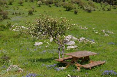 Keywords: vratsa natural park meadow bench picnic spot green flowers spring outside