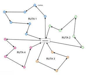 Keywords: Vrp esquema.png Esquema básico de un problema VRP own 12/02/2007 Alejandro Rodríguez Villalobos GPL Check categories 2009 February 9 pt wikipedia Problema_de_roteamento_de_veículos 2 Optimization Computer science