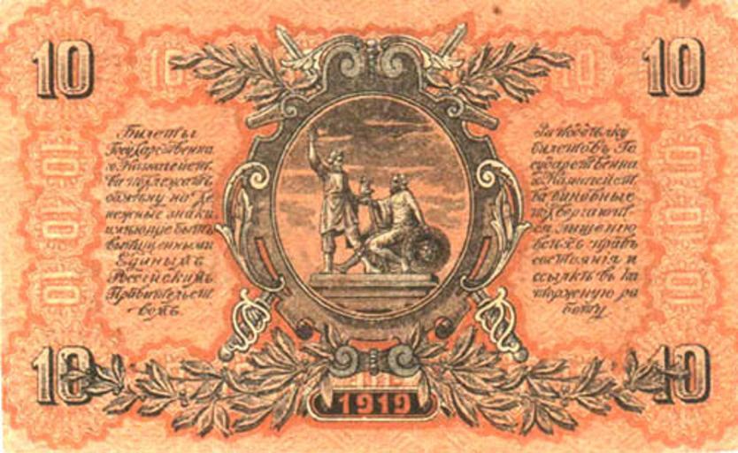 | Keywords: VSUR 10 Rubles-1919 reverse.jpg 10 ублей 1919 Реве с http //nensberg narod ru/russia/local/img01/420 html 1919 Казначейство ВСЮР 1919 currency Original upload log ru wikipedia ftcg page ru wikipedia VSUR_10_Rubles-1919_reverse jpg wikitable - 18 43 25 February 2011 500 × 307 59 936 bytes DP28 w ru <nowiki> Изоб ажение Описание Деникинки 10 ублей 1919 Реве с jpg Источник http //nensberg narod ru/russia/local/img01/420 html В емя создания 1919 Авто </nowiki> Banknotes of the Armed Forces of South Russia Banknotes of Russia 1919 Banknotes with a face value of 10 |