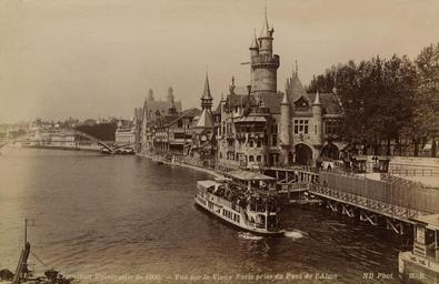 | Keywords: Vue sur le Vieux Paris prise du Pont de l'Alma.jpg View of the Seine river during the 1900 Paris World Fair On the right side of the photograph one can see the right bank of the Seine River where the Vieux Paris was located The Vieux Paris was a selection of temporary buildings erected for the occasion and designed to give the visitor an idea of what the city would have looked like in the Middle Ages 1900 photograph 12 x 18 5 cm Institution Brown University Library object history exhibition history credit line Published in N D Exposition universelle de 1900 album of 50 fine photographic views Paris 1900 accession number 130384720531251 PD-old Images of Paris from the Brown University Library Exposition universelle de 1900 album of 50 fine photographic views Le Vieux Paris de l'Exposition Universelle 1900 |