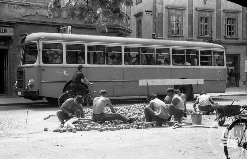 | Keywords: Vzdrževalna dela na avtobusnem postajišču v Ljubljani 1966.jpg Vzdrževalna dela na avtobusnem postajišču v Ljubljani 1966-07 https //fototekamnzs com/2016/07/08/vsakdanji-pojav-kljub-turisticni-sezoni/ creator Marjan Ciglič Watermark PD-Slovenia 1966 in Ljubljana 20th-century black and white photographs of Ljubljana Bus stops in Ljubljana Roadworks in Ljubljana Historical images of Ljubljana Passenger Transport buses in Ljubljana Men at work in Ljubljana Unidentified locations in Ljubljana Wheelbarrows in Ljubljana Photographs by Marjan Ciglič |
