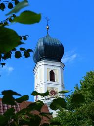 Keywords: waal in landsberg landsberg passion play church st anna onion dome steeple clock tower catholic building spire