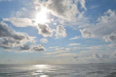 Keywords: wadden sea north sea watts beach coast sea sun clouds mudflat hiking cuxhaven germany blue mirroring ebb