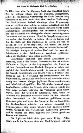 | Keywords: Wagner Die Statue des Markgrafen 03.jpg Ernst Wagner Die Statue des Markgrafen Karls II von Baden in Durlach im Zusammenhang mit süddeutschen Brunnenfiguren in Zeitschrift für die Geschichte des Oberrheins Neue Folge Bd 17 der ganzen Reihe 56 Bd 1902 S 123-141 Series title 1902 Karlsruhe http //archiv ub uni-heidelberg de/artdok/volltexte/2010/1037/ ART-Dok Uni Heidelberg PD-old Other versions Die Statue des Markgrafen Wagner | ||||